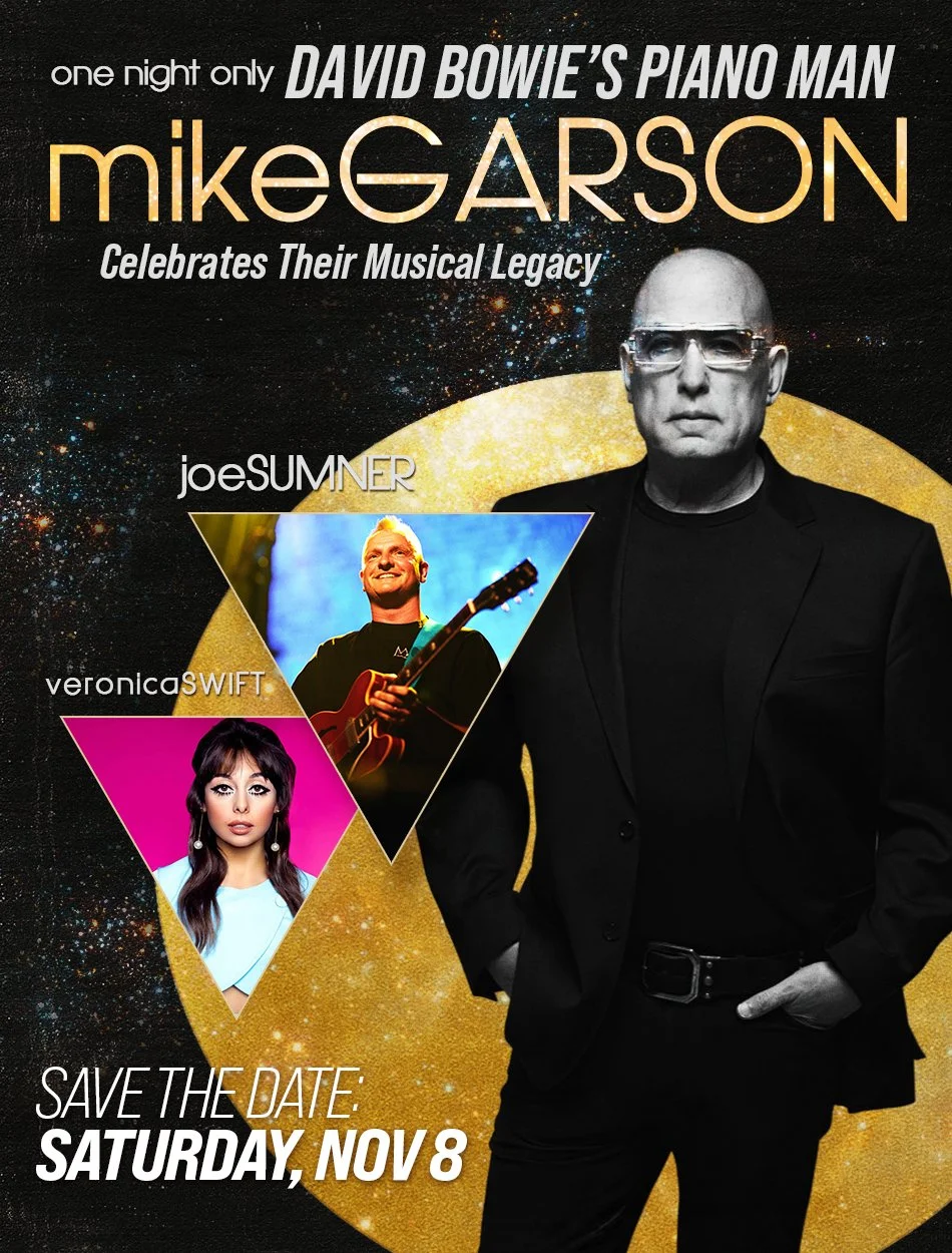 Aliso Viejo, CA – On Saturday, November 8, 2025, at 7:00 PM, David Bowie’s piano man, Mike Garson, will headline a powerful evening of music and remembrance at SOKA Performing Arts Center in Aliso Viejo, California.