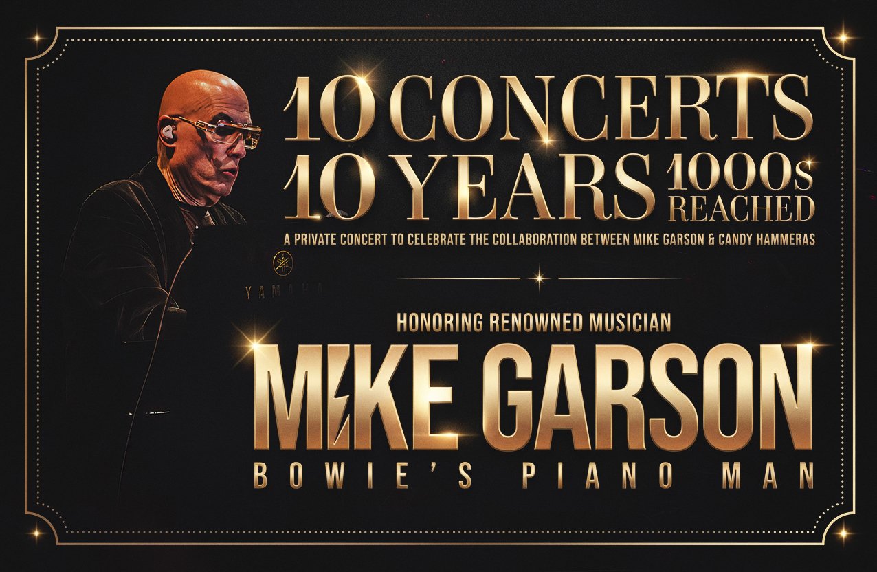 On Saturday June 6, 2026, we gather for a private concert honoring the music of David Bowie, marking the 10th anniversary of his passing from cancer, and celebrating a decade of collaboration between Mike Garson and Candy Hammeras, founder of Cancer Teamwork Response (CTR).